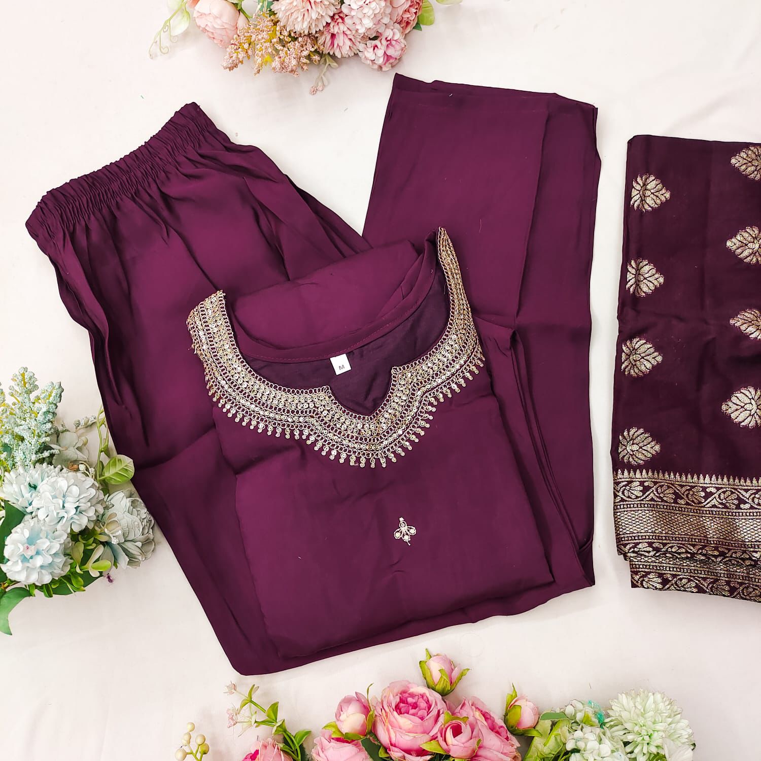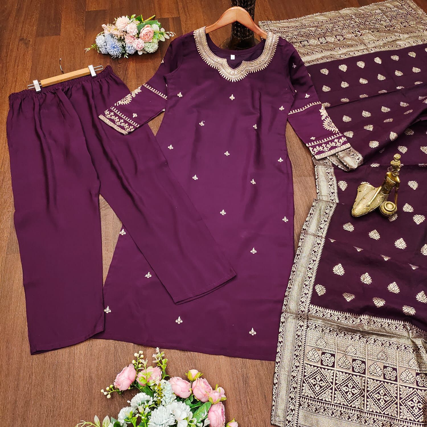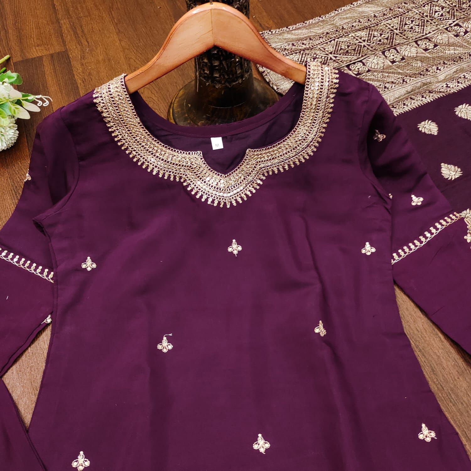 A HEAVY PURPLE FULLY STITCHIED SUIT SET