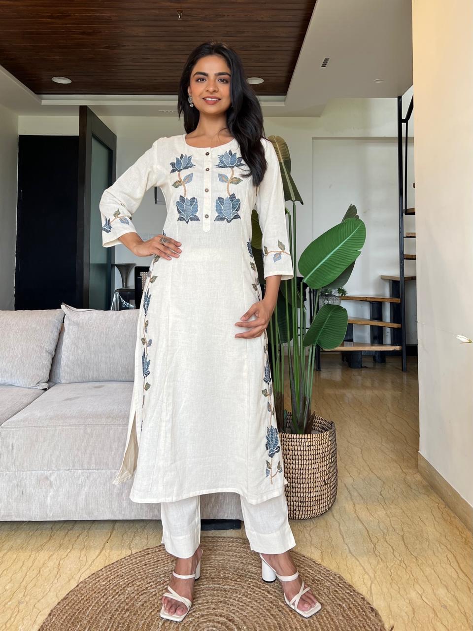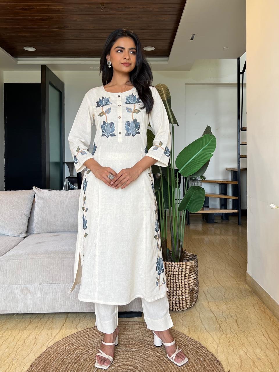 Pure Khadi Cotton Designer Suit Set – Elegant Embroidery & Comfort 🌼