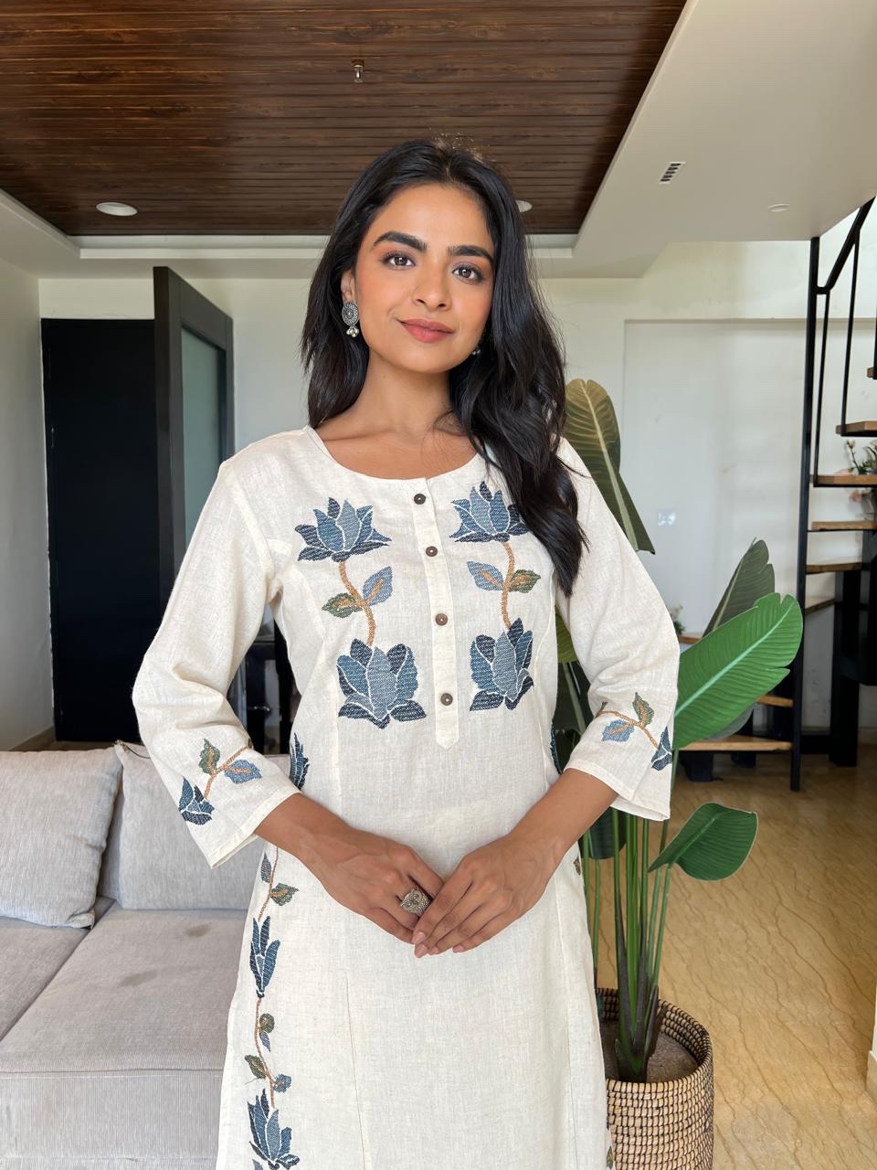 🌼 Beautiful Heavy Embroidery | Pure Khadi Cotton | Sizes M to 3XL